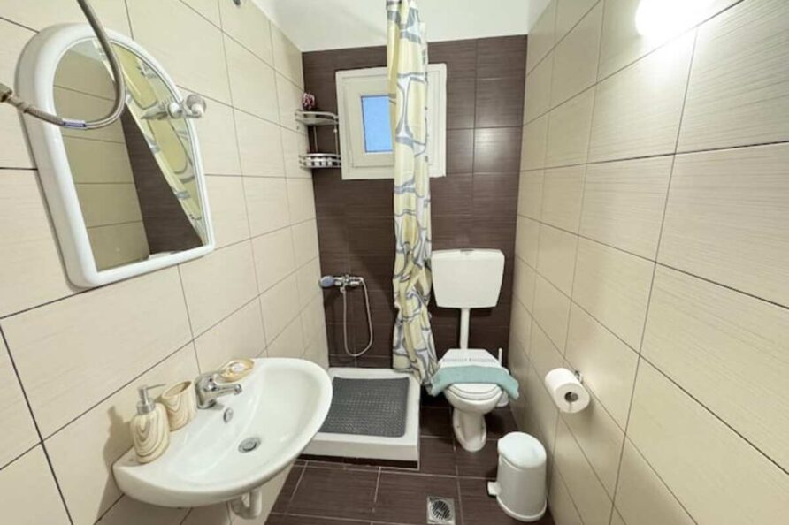 Designed with guest comfort in mind, this apartment includes one modern bathroom with a shower, fresh bed linen, and towels for a hassle-free stay. Air conditioning ensures cool relaxation during warm summer days, and the property’s excellent guest ratings highlight its cleanliness, thoughtful amenities, and welcoming vibe. Whether you’re traveling with family or friends, Dimado 4 offers the perfect blend of privacy and convenience.